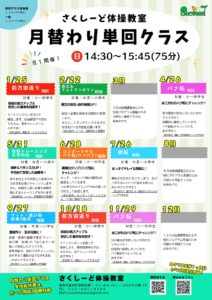日曜日に月に1回、月替わり単回クラスを実施しております!